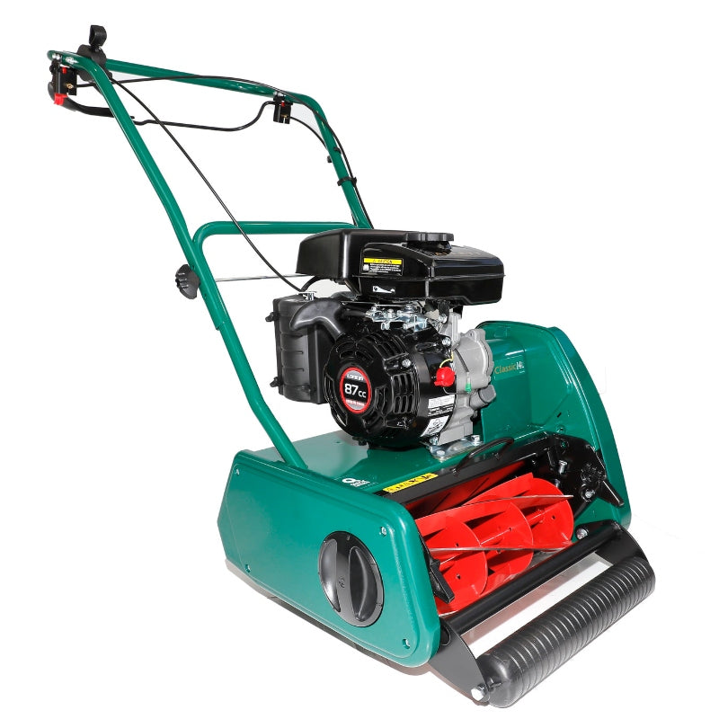 These models are simple to use and give petrol-powered mowing without the restrictions and hassle of an electric cable or extension leads. Both Classic Petrol models are powered by a reliable 87cc Loncin four-stroke engine with strong recoil-pull start performance. The additional weight of the engine adds to the contrast of the stripes created by the single steel rear roller.