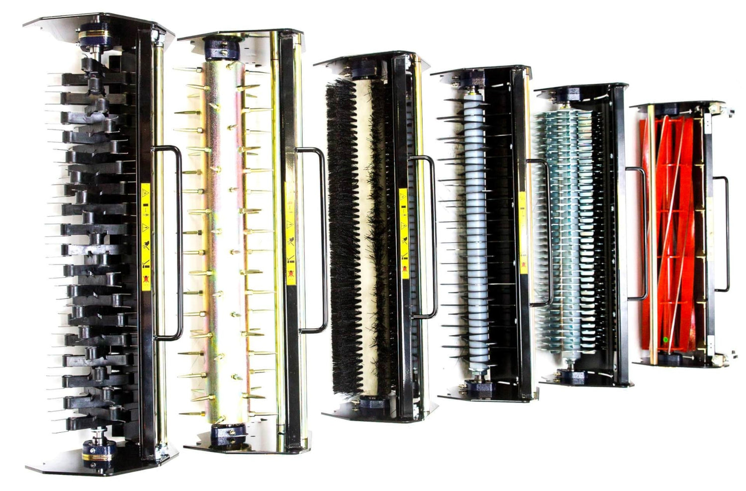 We have seven Homeowner cartridges: 6-blade cylinder, 10-blade cylinder, scarifier, aerator, de-thatcher, verticutter, brush. The 6-blade cylinder is fitted to new mowers as standard and the other six optional cartridges can be fitted to the Kensington mowers and the Liberty 43. The Liberty 30 and 35 will take the scarifier cartridge, as will the Classic and Sandringham mowers.