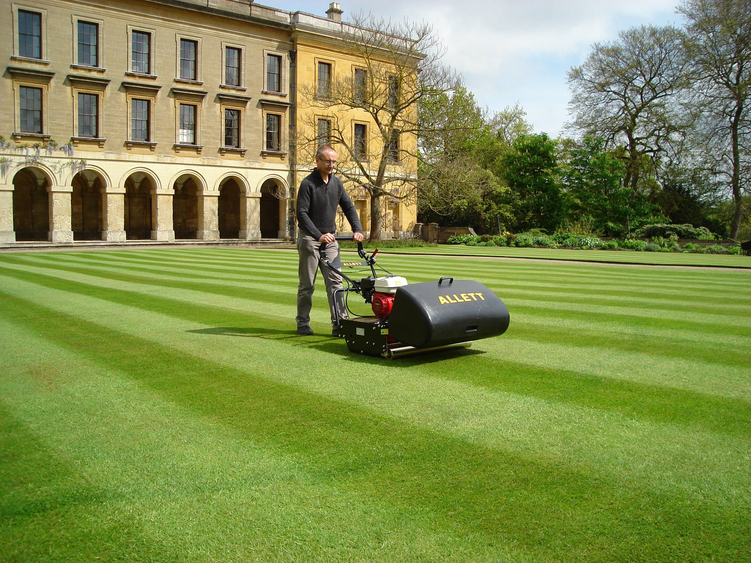 The Buffalo truly is the great ‘all-rounder’ in the Allett lineup, capable of producing a first-class finish across a wide range of grass types and mowing conditions, even wet conditions. Choose the Buffalo 34 for regular mowing of ornamental grass in public and private parks and gardens. Combining a wide cut with low weight, the Buffalo machines are ideal for maintaining larger, sensitive areas such as sports grounds and prestige lawns and can be seen mowing the pitches at the grassroots level to some of the world’s biggest clubs. Engineered to operate effectively at low engine speeds the Buffalo delivers low fuel consumption, noise levels and vibration.