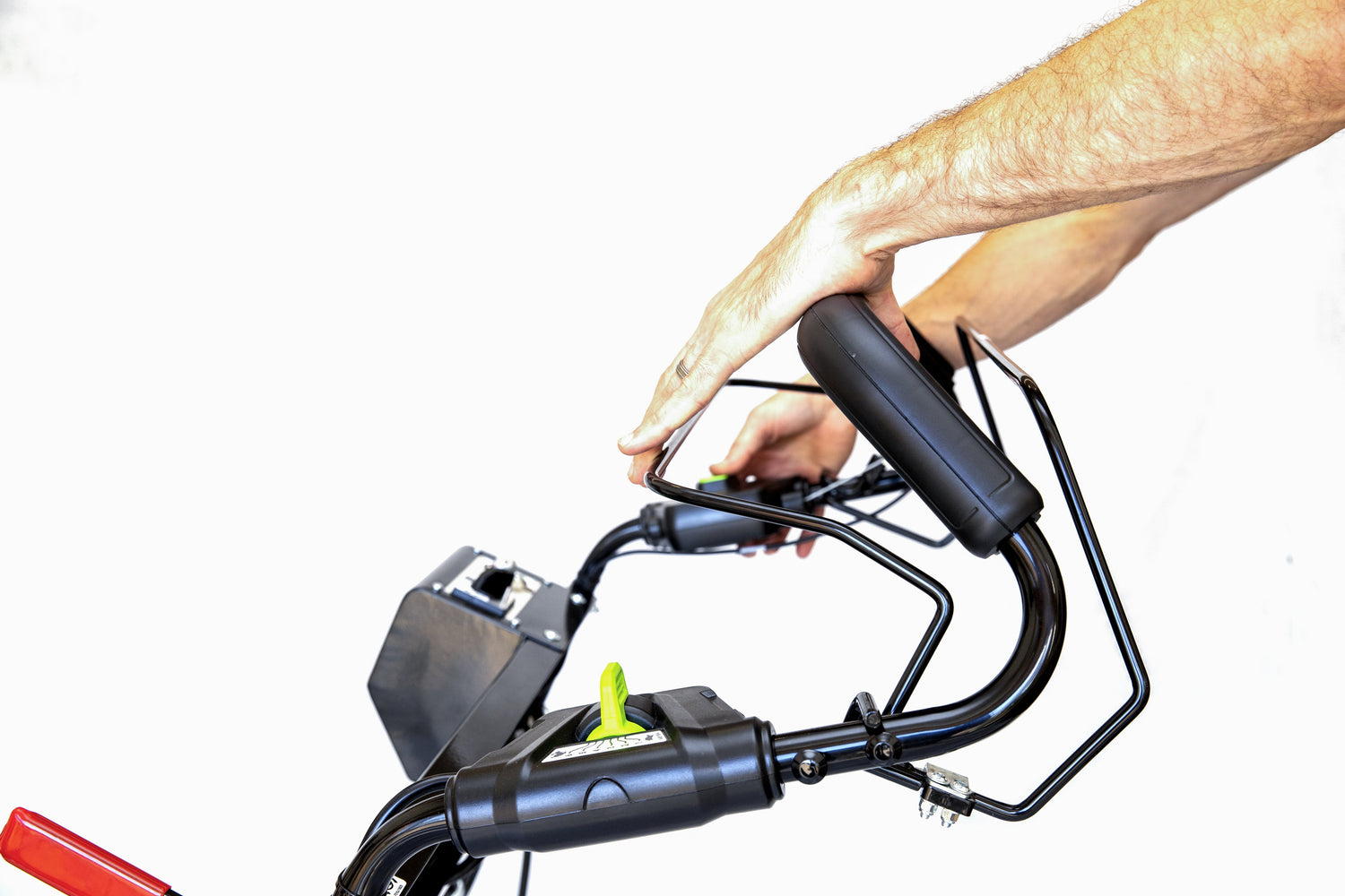 - Wide handlebars with touch button control to give an instant half-speed reduction for controlled turning and manoeuvring around obstacles