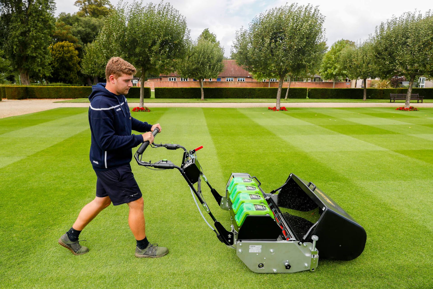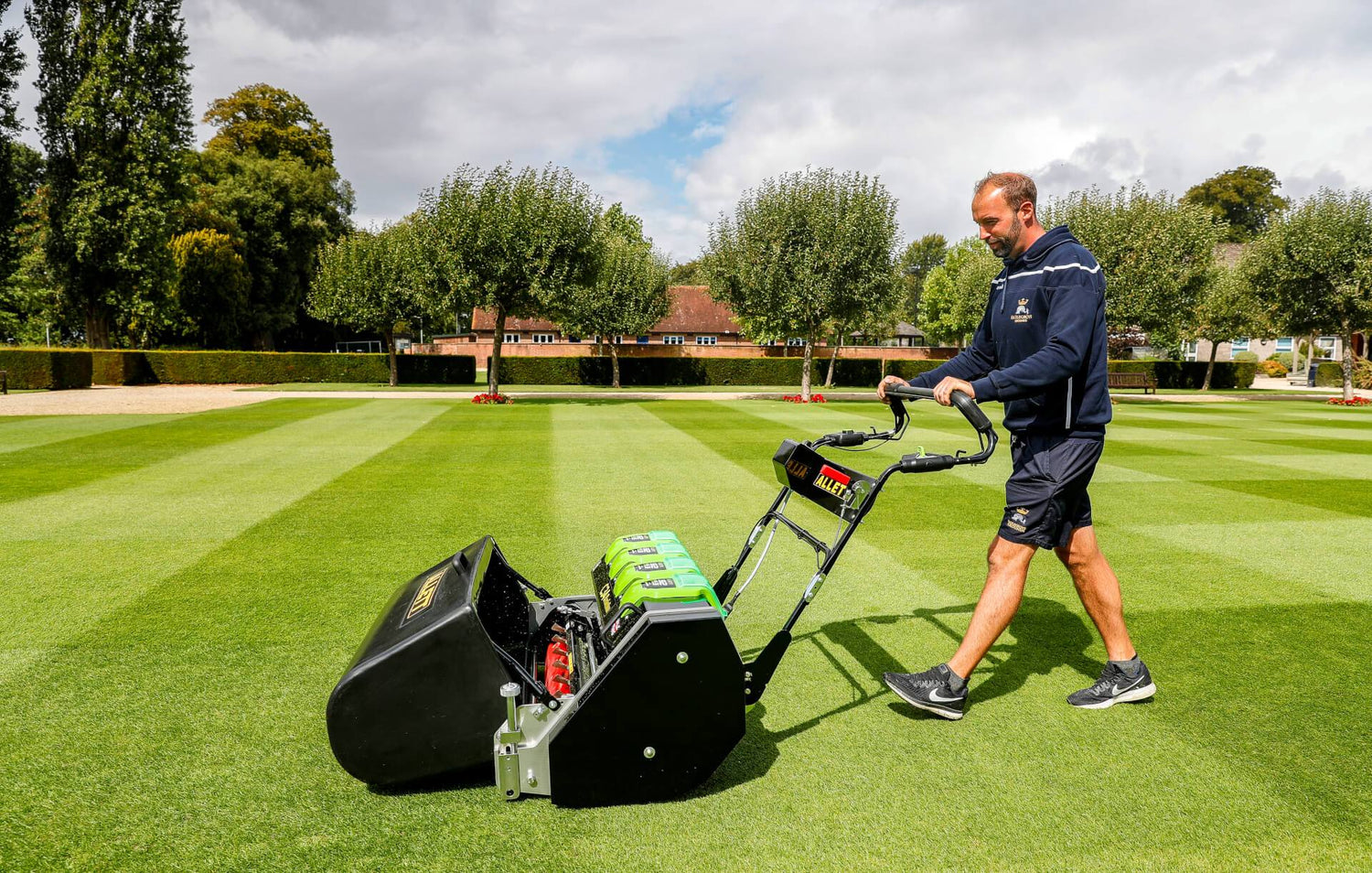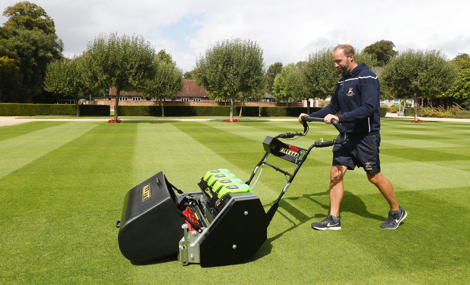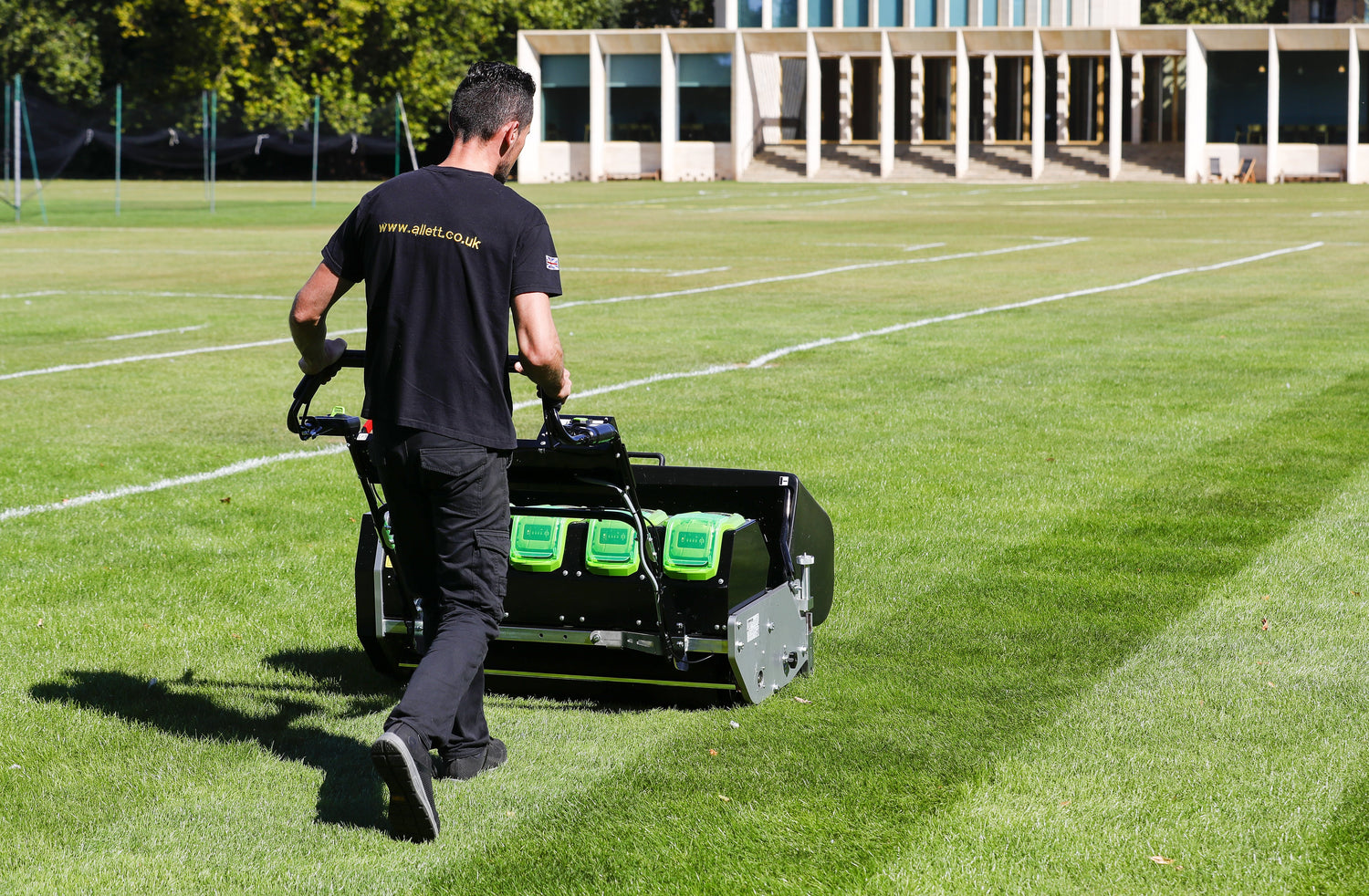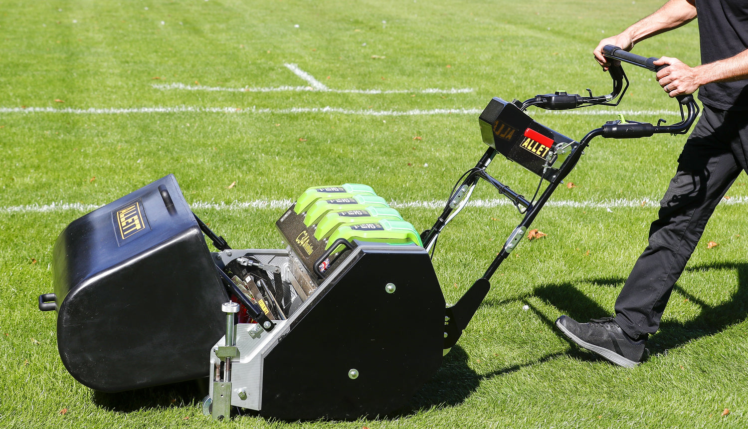 Allett powers into the new age of electric mowers with the C34 Evolution, the large area, walk-behind cylinder mower. The latest Lithium-Ion system battery technology drives the future of mowing systems for sports stadiums, training grounds and prestige lawns, without compromise and with all the attributes of the Allett heritage.