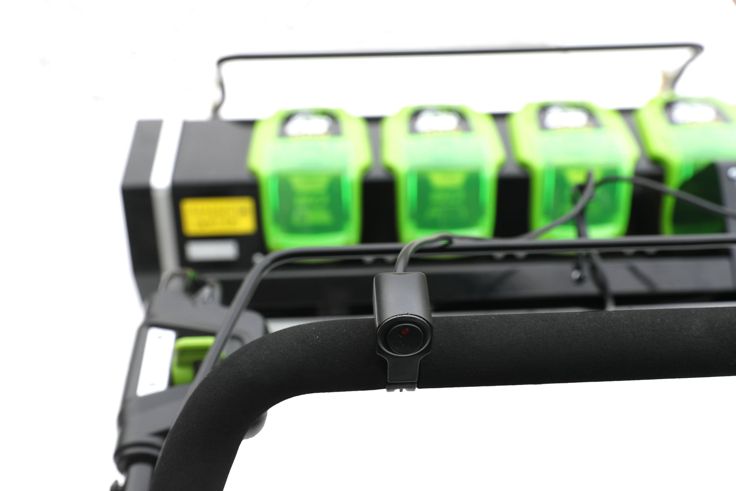 The system has the power to run a series of interchangeable cartridges to scarify, rake, aerate, brush and verti-cut as well as mow with strong striping and an impeccable cut. Quiet operation, no petrol requirement, less than one hour to recharge batteries and much reduced HAV’s (Hand Arm Vibration) add up to a more environmentally sensitive product with no emissions. These are all benefits which will be particularly recognised in enclosed stadiums. The 82V (6Ah) system is powerful enough to deliver the performance required, even for such a large mower, and drive the cartridges for year-round professional multiple task turf maintenance.