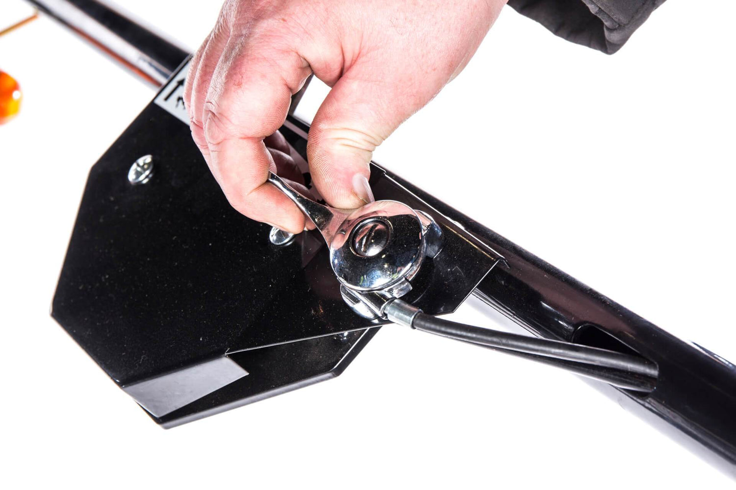 - Cylinder engagement Handle-mounted lever engaging triple V belts via rods