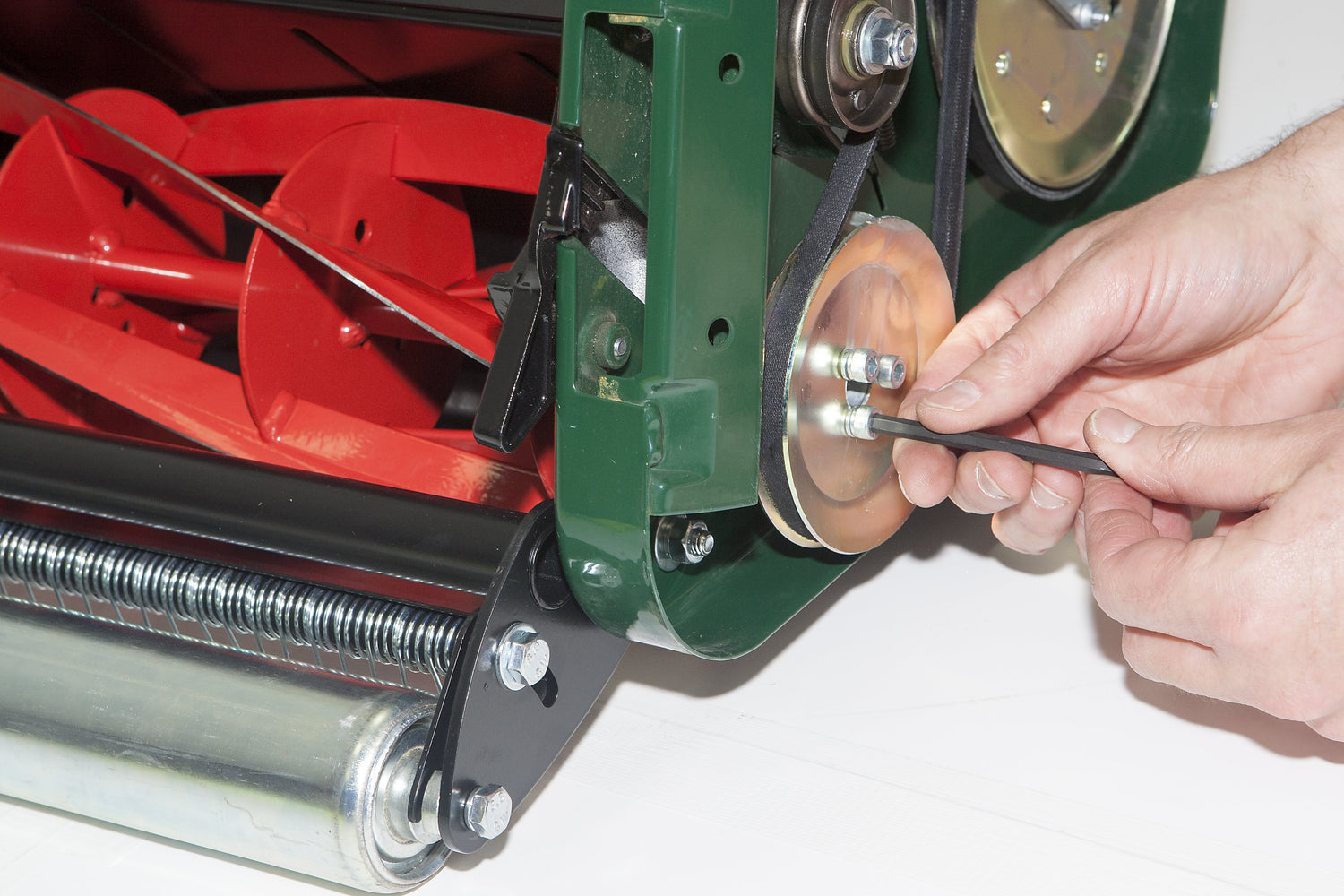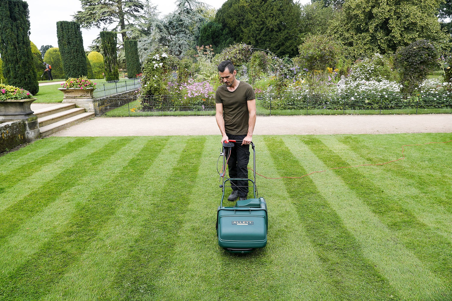 The Sandringham 14E’s cutting unit incorporates a static rake to tease and lift out dead material, moss and lateral grasses for improved cutting performance, whilst an optional powered scarifier cartridge can be fitted easily in place of the mower’s standard cutting unit.