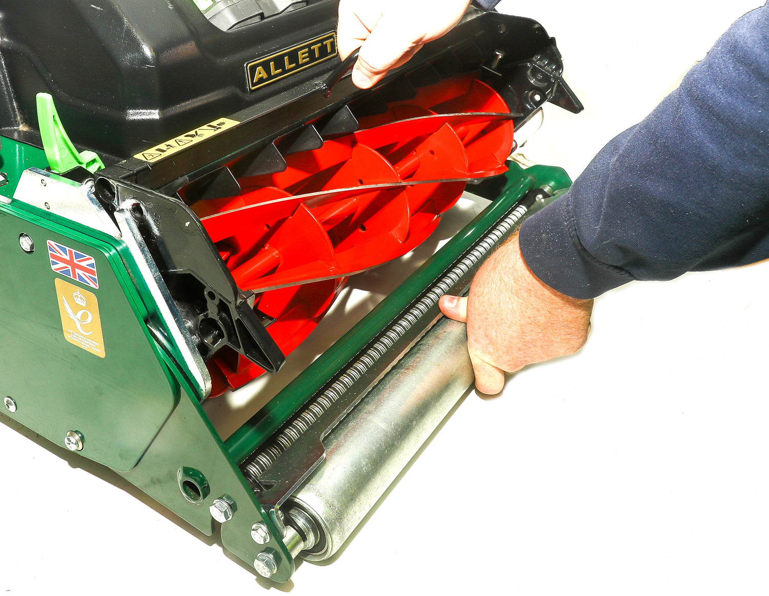 The 6-bladed mowing cartridge comes as standard. There is an optional 10-bladed cylinder with a thinner front-edged blade for where a close shave is desired for example golf and bowling greens.