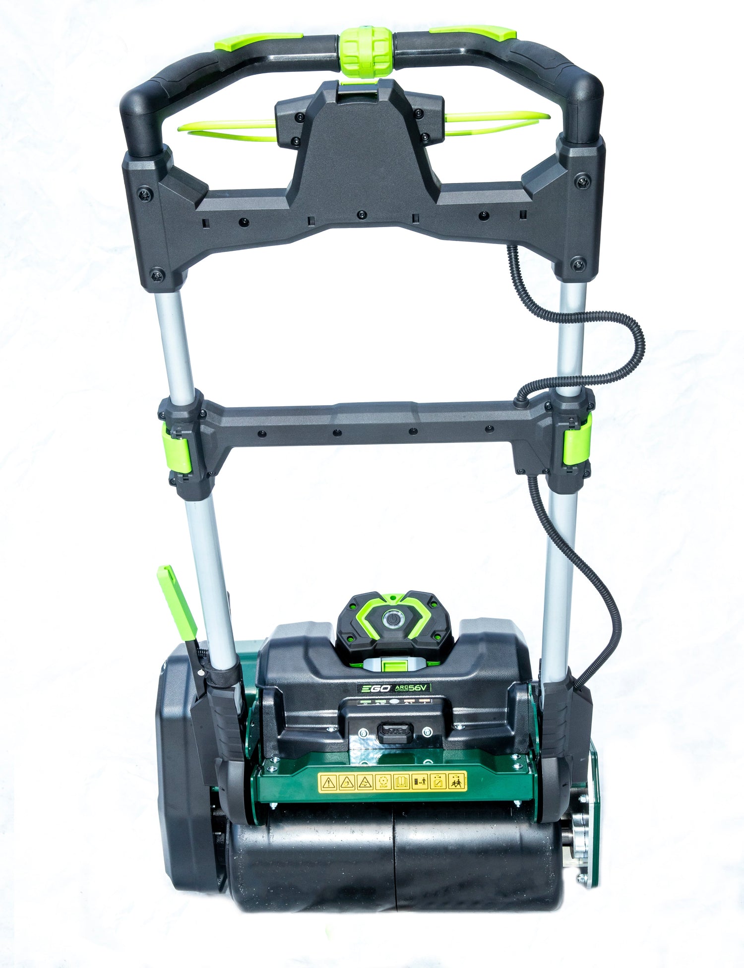 Powered by the EGO 56V battery system using their unique 'Keep Cool'™ Technology, the mowing and cultivation cartridges are driven by a separate powerful electric motor(ProDrive™) and the rear roller drive speed is controlled by the handlebar mounted speed control which can be adjusted on-the-move so the correct forward speed is selectable to achieve the best results.