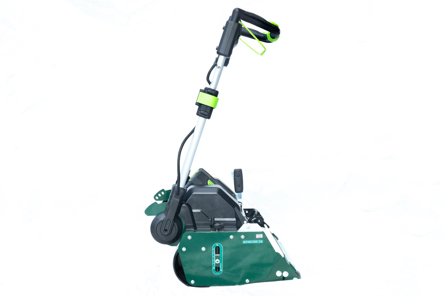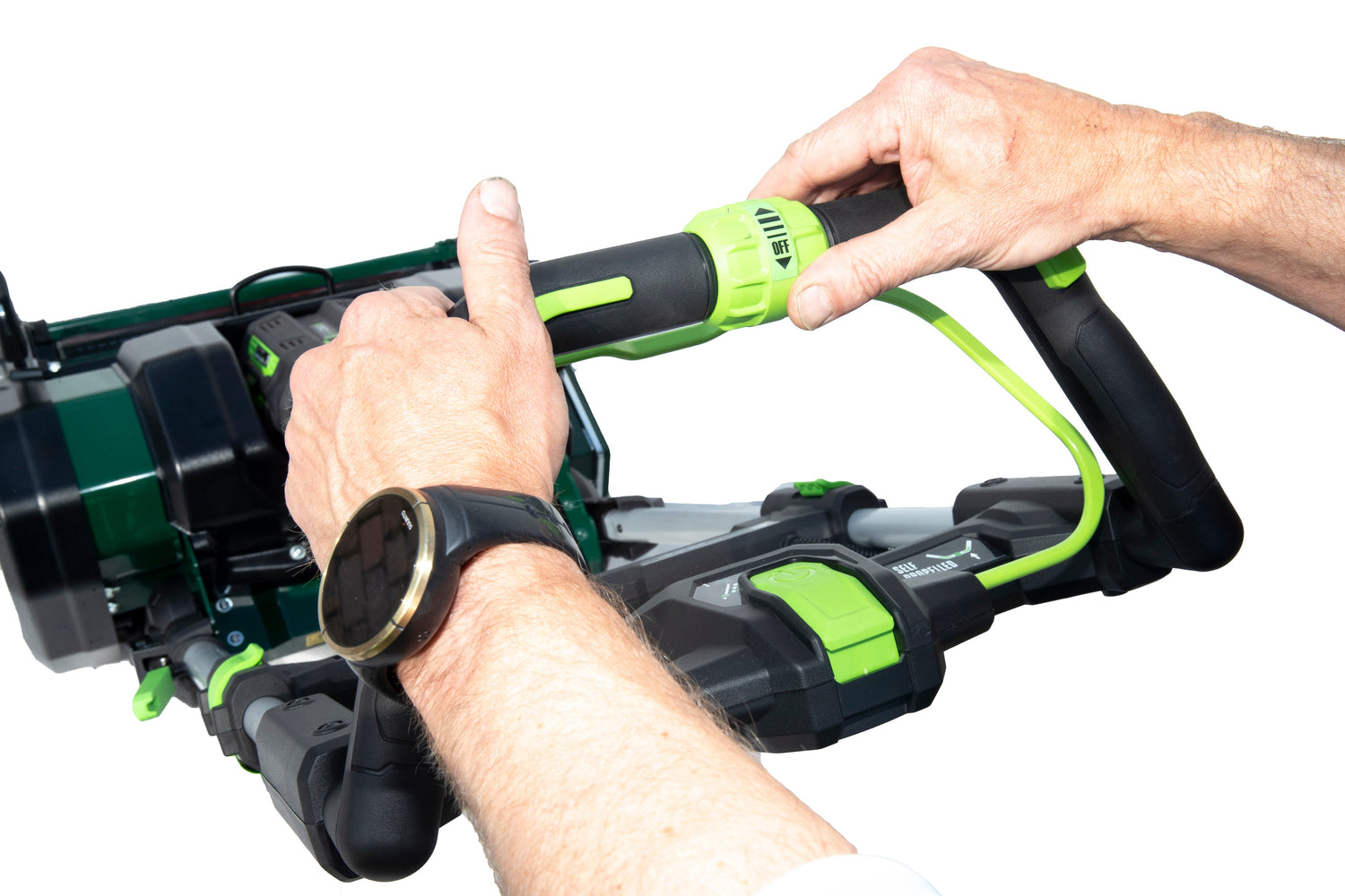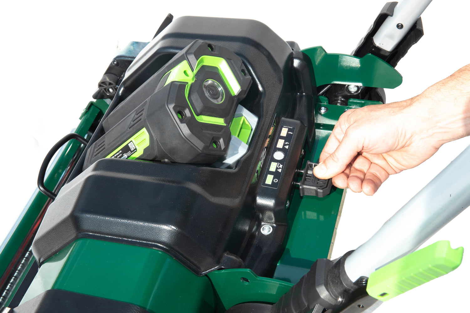 Powered by the EGO 56V battery system using their unique 'Keep Cool'™ Technology, the mowing and cultivation cartridges are driven by a separate powerful electric motor(ProDrive™) and the rear roller drive speed is controlled by the handlebar mounted speed control which can be adjusted on-the-move so the correct forward speed is selectable to achieve the best results.