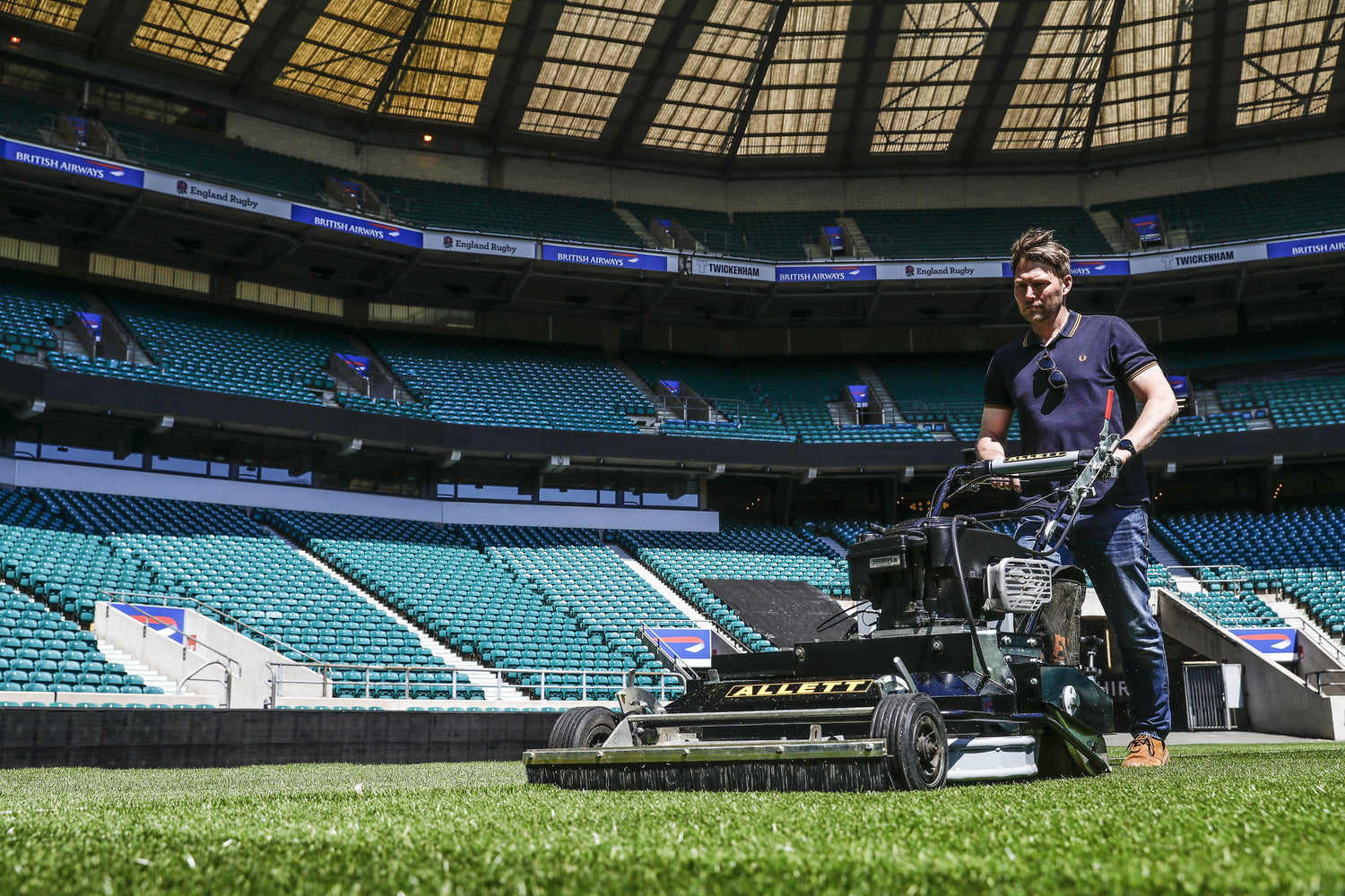 The medium and hard bristle brushes are great for enhancing stripes as well as breaking up any surface or lower debris. This brush can be raised and lowered to be more or less aggressive.
